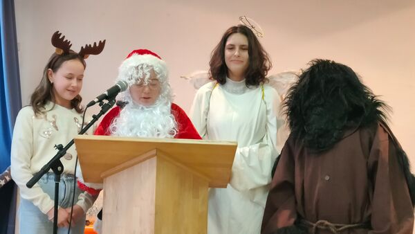 Auch der Nikolaus, samt seinem Rentier, Engel und Knecht Ruprecht, waren anwesend, trugen für jede Klasse etwas aus dem Goldenen Buch vor und zauberten dem ein oder anderen Schüler und auch dem Kollegium ein Schmunzeln ins Gesicht.